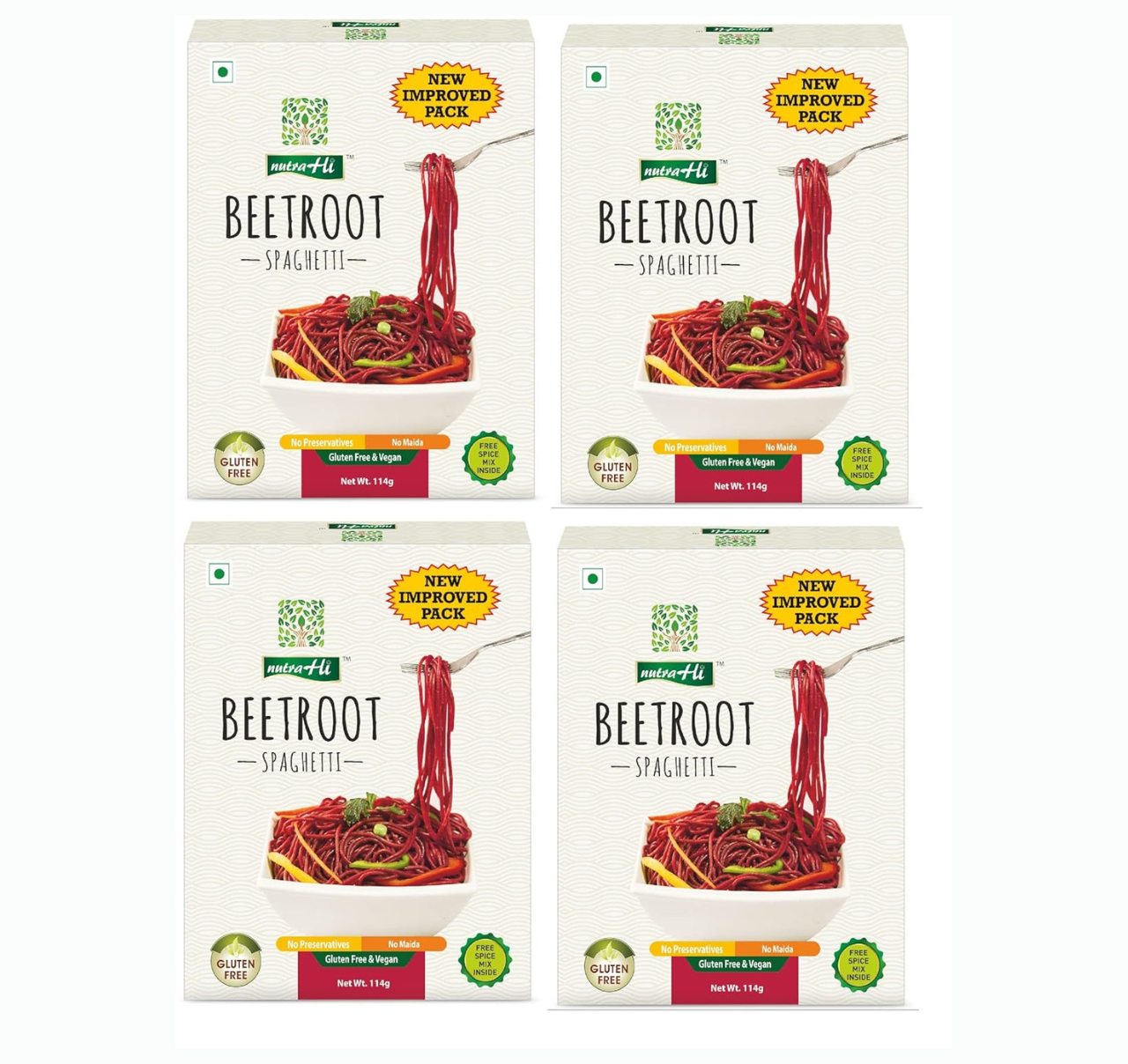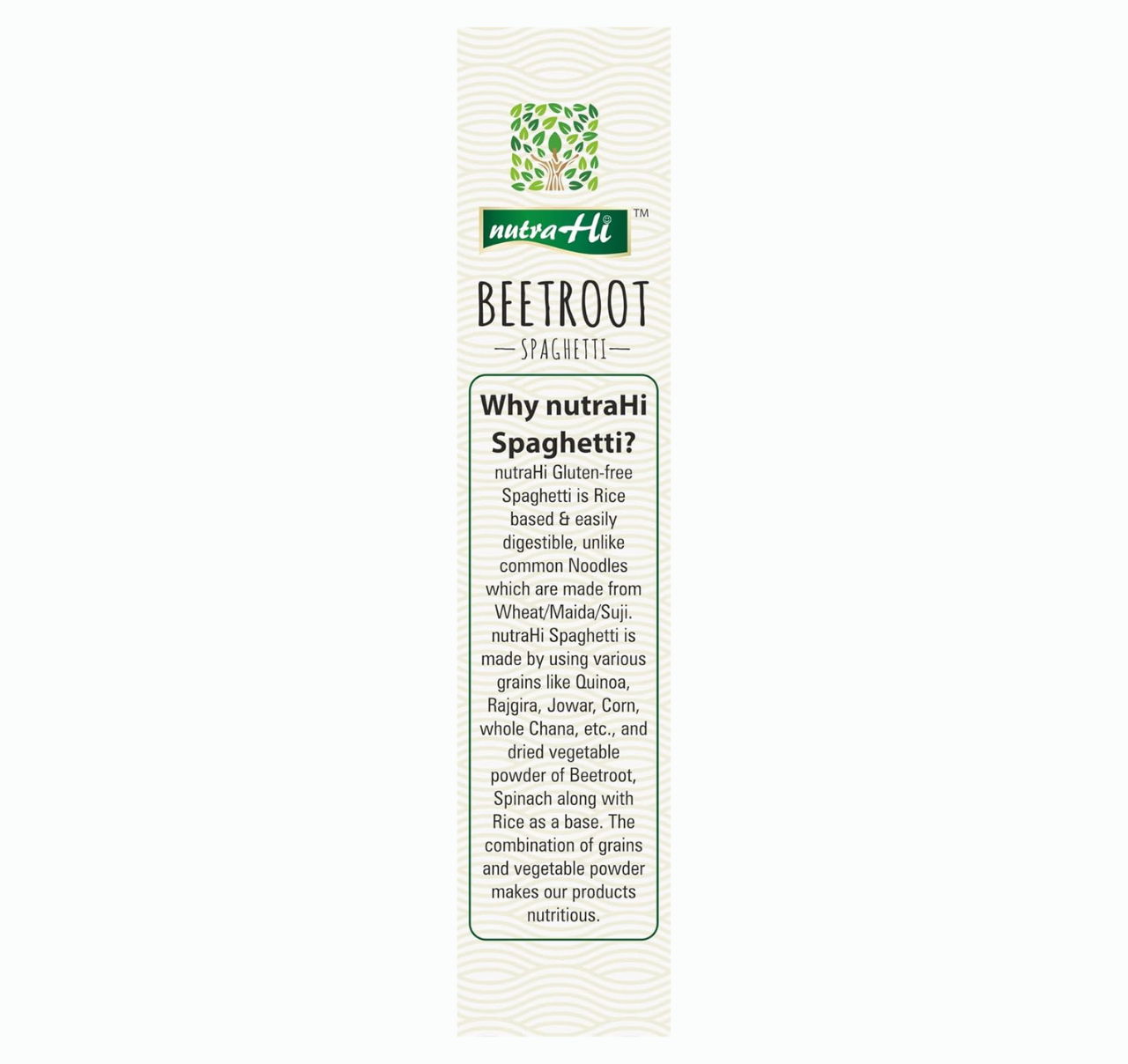 NutraHi Beetroot Spaghetti is crafted using rice and natural beetroot powder to provide a healthy, colourful, and delicious alternative to traditional wheat or maida noodles. Beetroot, known for its rich antioxidant profile, supports improved blood flow, enhanced stamina, and better immunity.