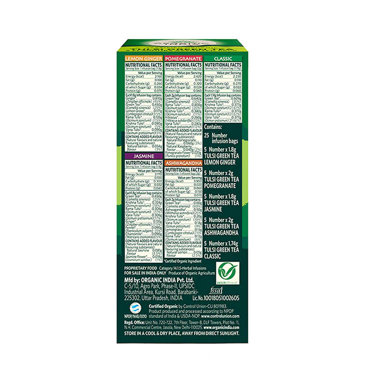 ⭐ Organic India Tulsi Green Tea Favourites – Assorted Pack | Certified Organic | Stress-Relieving & Uplifting | 25 Tea Bags