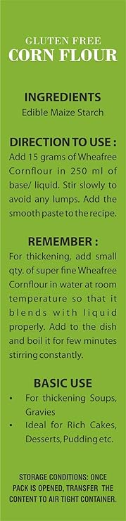 Crafted in a dedicated gluten-free facility, this corn flour is ideal for people with celiac disease or gluten intolerance, and for anyone pursuing a healthy, balanced diet. Whether you’re preparing crispy batter, creamy custard, or thick gravy, Wheafree ensures a lump-free, flavorful, and wholesome cooking experience every time.
